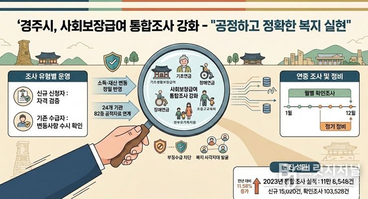 브릿지저널 정보영 기자 | 경주시가 사회보장급여 대상자의 자격 확인과 공정한 급여 지급을 위해 통합조사를 강화하고 있다고 12일 밝혔다.