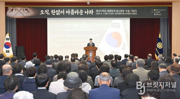 브릿지저널 김진석 기자 | 대구광역시는 대한민국 임시정부 수립 제107주년을 맞아 4월 11일 오전 10시, 시청 산격청사 대강당에서 기념식을 거행했다.