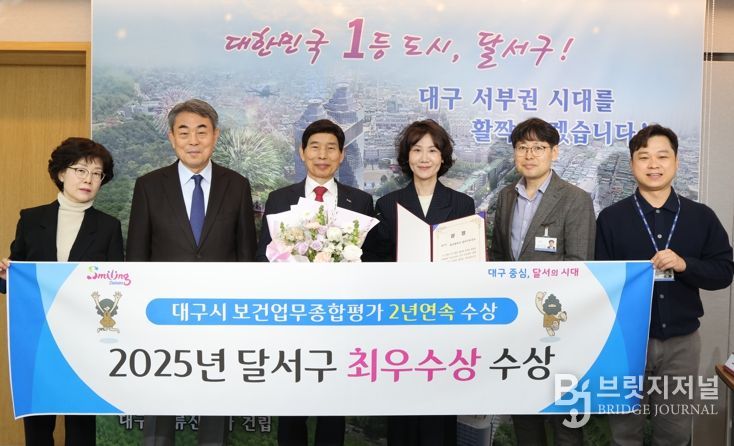 브릿지저널 김진석 기자 | 대구 달서구는 대구시가 주관한'2025년 보건업무종합평가'에서 달서구보건소가 최우수상을 수상했다고 12일 밝혔다.