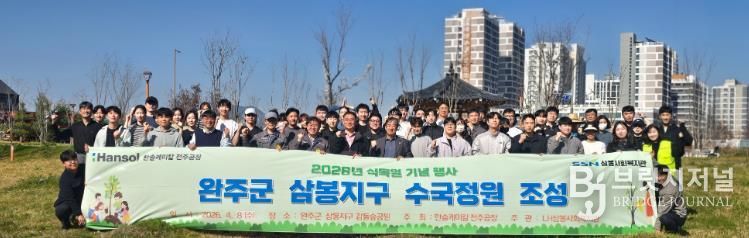 브릿지저널 윤나영 기자 | 완주군 봉동읍에 위치한 한솔케미칼 전주공장과 LH삼봉사회복지관이 제81회 식목일을 맞아 완주군 삼봉지구 감돌숲공원에서 ‘수국 정원 조성 행사’를 열고 지역사회를 위한 환경 가꾸기에 나섰다.