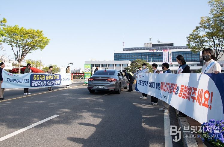 브릿지저널 정보영 기자 | 구미시는 13일 오전 8시 30분 시청 입구에서 출근길 직원과 시민들을 대상으로 에너지 절약 실천을 위한 ‘공공기관 승용차 2부제 및 공영주차장 5부제’ 동참 캠페인을 펼쳤다.
