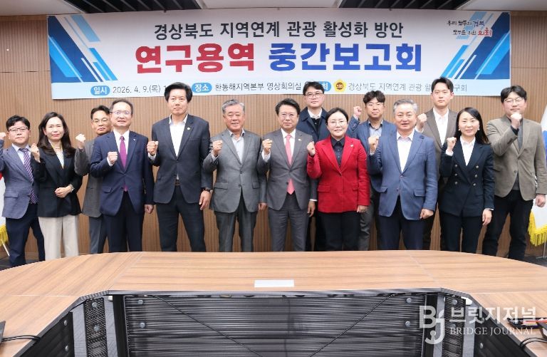 브릿지저널 정보영 기자 | 경북도의회 의원연구단체인 '경상북도 지역연계 관광 활성화 연구회'(대표 연규식 의원)는 지난 9일 오전 11시 경북도청 동부청사에서 ‘경상북도 지역연계 관광 활성화 방안 연구용역’ 중간보고회를 개최했다.