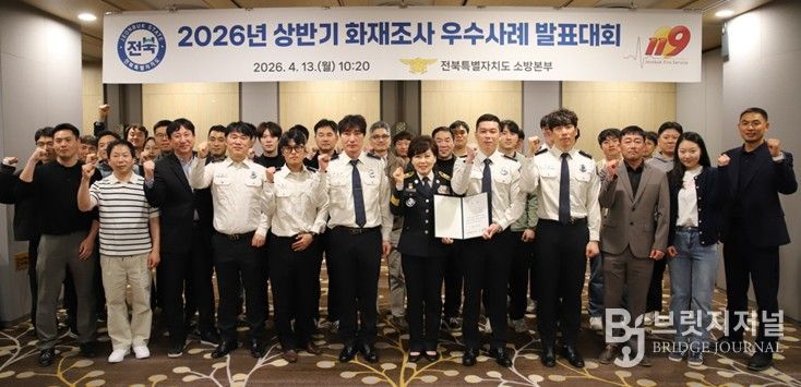 브릿지저널 윤나영 기자 | 전북특별자치도 소방본부는 13일 전주 라한호텔에서 2026년 상반기 화재조사 우수사례 발표대회를 개최하고 화재조사 우수사례를 공유하며 화재조사관들의 전문성 강화와 보고서 품질 향상을 도모했다.
