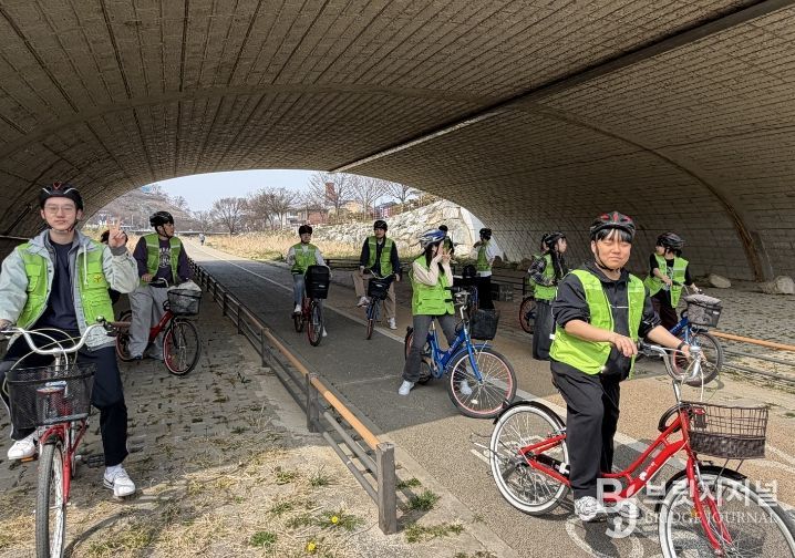이번 행사는 ‘자전거를 타GO!, 줍GO!’ 플로깅 프로그램으로, 학생들이 자전거를 타고 이동하며 주요 구간 곳곳에 버려진 쓰레기를 수거하는 방식으로 진행됐다. 참여자들은 친환경 이동수단을 활용한 체험형 캠페인을 통해 탄소 배출 저감과 환경보호의 중요성을 시민들에게 알렸다.