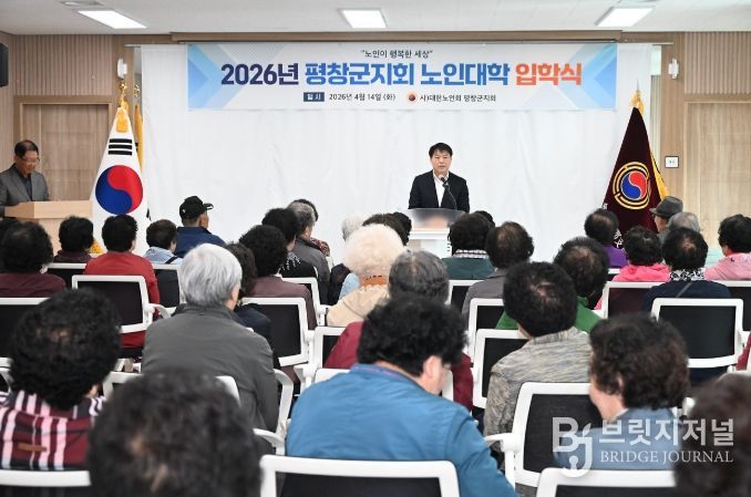 브릿지저널 윤나영 기자 | (사)대한노인회 평창군지회(지회장 김대성)는 지난 14일 오전 10시, 평창군지회 2층 강당에서 2026년 노인대학 입학식을 개최했다.
