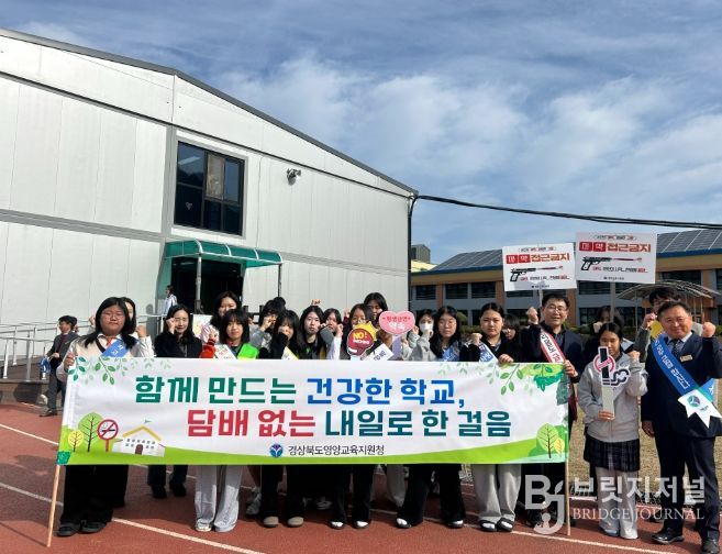브릿지저널 정보영 기자 | 경상북도영양교육지원청은 학생들의 흡연 및 마약 예방 인식 강화를 통한 안전한 학교 환경 조성을 위해 2026년 4월 15일 영양여자중고등학교에서 ‘흡연 및 마약 예방 등굣길 캠페인’을 실시했다.