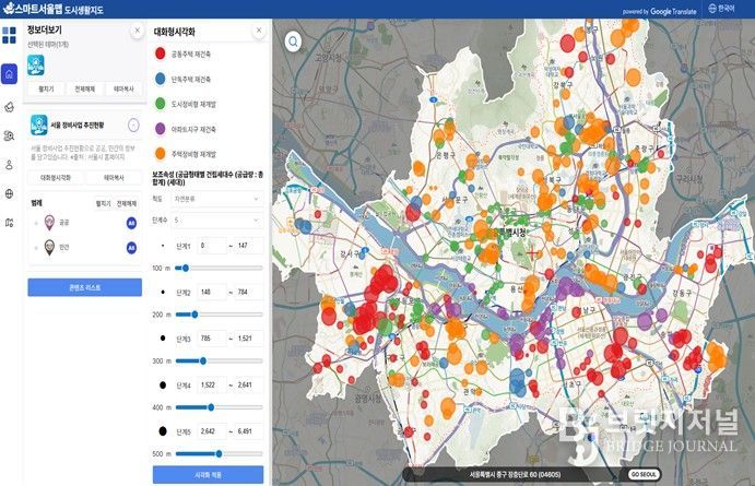 브릿지저널 김경미 기자 | 서울시가 온라인 지도 서비스 ‘스마트서울맵’을 한 단계 업그레이드했다. 복잡한 정책 정보를 시민이 지도위에서 한눈에 이해할 수 있도록 한 ‘차세대 도시생활지도’와 ‘대화형 인구-정책지도’를 17일부터 새롭게 선보인다.