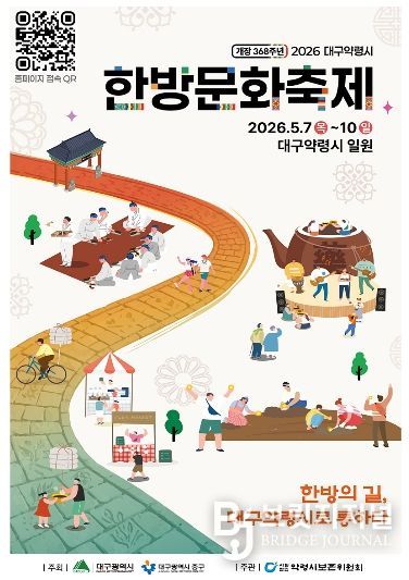 브릿지저널 김진석 기자 | 대구광역시와 대구광역시 중구가 주최하고 (사)약령시보존위원회가 주관하는 지역 대표 전통문화축제인 ‘2026 대구약령시 한방문화축제’가 오는 5월 7일부터 5월 10일까지 4일간 대구약령시(중구 약전골목) 일원에서 개최된다.