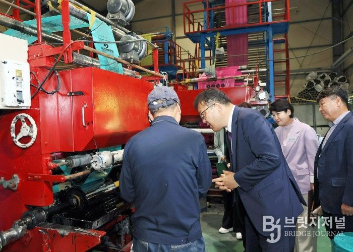 브릿지저널 김경미 기자 | 장금용 창원특례시장 권한대행은 16일 중동 사태 장기화로 나프타 수급 차질이 우려되는 상황에서 대안으로 주목받는 재생원료를 활용해 종량제봉투를 생산하는 관내 기업 ‘인테크’를 방문했다.