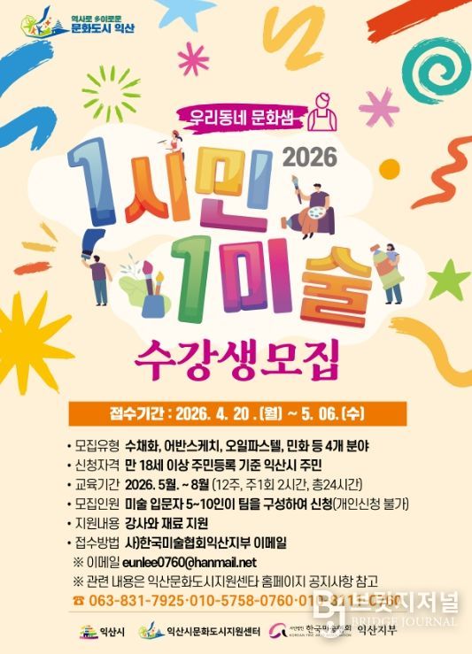 시는 익산시문화도시지원센터와 함께 오는 20일부터 5월 6일까지 '1시민 1미술'에 참여할 25팀을 모집한다.