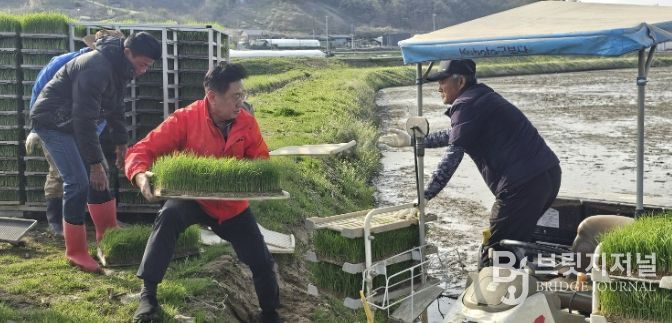 브릿지저널 김경미 기자 | 양평군은 지난 15일 지평면 수곡리에 위치한 전경복 농가에서 올해 첫 모내기를 실시했다고 밝혔다.