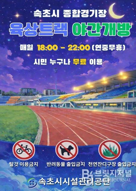 브릿지저널 윤나영 기자 | 속초시시설관리공단(이사장 이선규)은 오는 4월 20일부터 노학동 종합경기장 내 육상트랙을 시민들에게 야간 개방한다고 밝혔다.