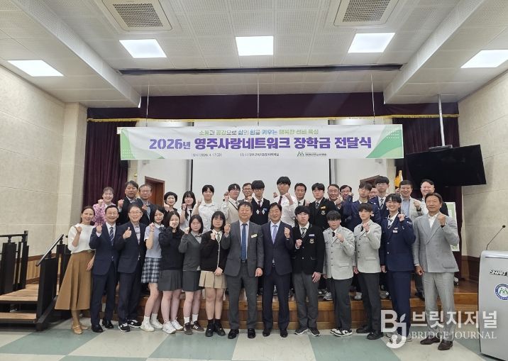 브릿지저널 정보영 기자 | 재경 영주 출신 재계, 관계, 법조계, 학계, 언론계 인사들의 모임인 영주사랑네트워크 (회장 이종오)가 4월 17일 영주교육지원청에서 영주지역 9개 고등학교 학생 20명에게 1,000만원의 장학금을 전달했다.