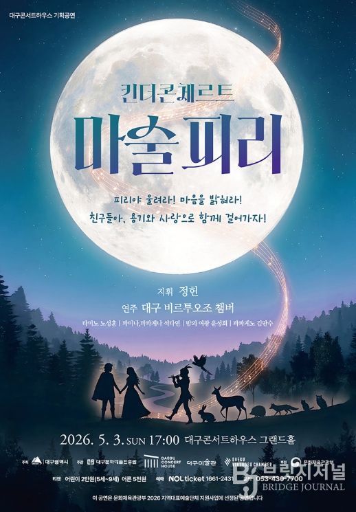 브릿지저널 김진석 기자 | 대구문화예술진흥원 대구콘서트하우스는 5월 3일 오후 5시 그랜드홀에서 어린이 참여형 음악 공연 '킨더콘체르트: 마술피리'를 개최한다.