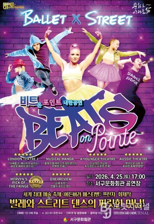브릿지저널 김진석 기자 | 서구문화회관은 4월 25일 오후 5시 서구문화회관 공연장에서 4월 서구愛 마토콘서트로 댄스 퍼포먼스'비트 온 포인트'내한 공연을 개최한다.