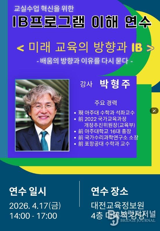 브릿지저널 정보영 기자 | 대전시교육청은 4월 17일 오후 대전시교육청 대강당에서 관내 교원 및 교육 전문직원 210명을 대상으로 ‘2026학년도 IB 프로그램 이해 연수’를 개최했다.