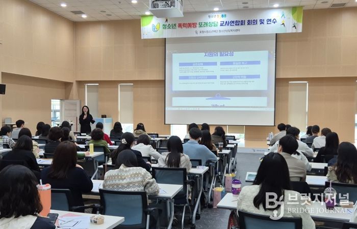브릿지저널 정보영 기자 | 포항시청소년재단 청소년상담복지센터는 학교폭력 예방과 건강한 학교문화 조성을 위해 지난 17일 북구청소년문화의집에서 ‘또래상담 지도교사 연합회 및 연수’를 개최했다.