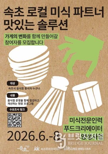 한편, 사업은 속초시 소재 음식업 소상공인 10개소 내외를 대상으로 추진될 예정이다. 선정된 사업장에는 시그니처 메뉴 개발 또는 기존 메뉴 개선, 조리 공정 및 운영 효율화, 서비스 개선 등 맞춤형 컨설팅이 지원된다. 아울러 컨설팅 과정에서 도출된 결과를 공유하는 성과공유회와 사업 과정 기록, 아카이빙도 함께 추진해 지역 음식점의 변화 사례를 확산할 계획이다.