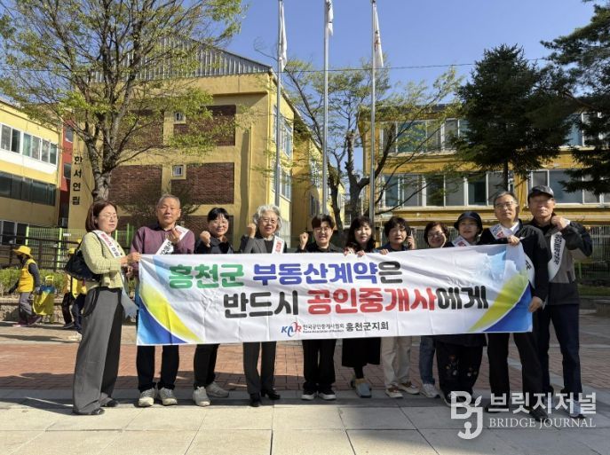 브릿지저널 윤나영 기자 | 한국공인중개사협회 강원특별자치도 지부 홍천군지회는 16일 오전 9시, 홍천읍 꽃뫼공원 및 인근 상가 밀집 지역에서 군민들을 대상으로 ‘안전한 부동산 거래 문화 정착을 위한 캠페인’을 전개했다.