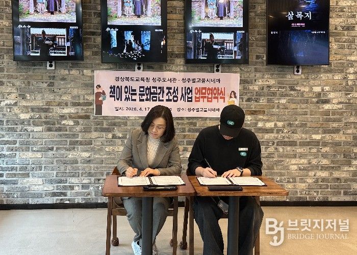 브릿지저널 정보영 기자 | 경상북도교육청 성주도서관은 성주별고을시네마와 '책이 있는 문화공간 조성'사업 추진을 위한 업무협약을 체결하고, 작은영화관과 연계한 독서문화 확산에 나선다.