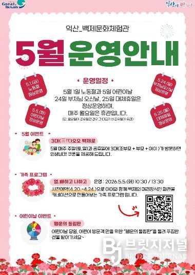 브릿지저널 윤나영 기자 | 익산시는 백제문화체험관에서 5월 가정의 달을 맞아 체험 프로그램과 이벤트를 운영한다고 20일 밝혔다.
