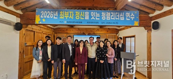 브릿지저널 정보영 기자 | 경상북도경주교육지원청은 4월 16일 목요일 경주 최부자 아카데미에서에서 경주교육지원청 교육전문직원과 행정직원을 대상으로 ‘최부자댁 정신을 잇는 청렴 리더십 연수’를 운영했다.