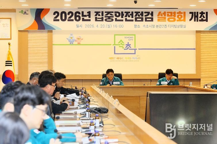 브릿지저널 윤나영 기자 | 속초시는 4월 20일 시청 디지털상황실에서 배상요 속초시장 권한대행 부시장 및 관계 공무원과 전기·가스·건축 등 분야별 안전관리자문단 등 58명이 참석한 가운데 2026년 집중안전점검 담당자 설명회를 개최했다.