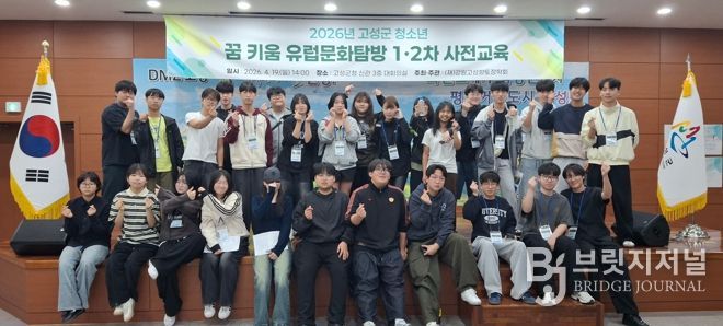 브릿지저널 윤나영 기자 | 평화 경제 거점 도시 강원 고성군 산하 (재)고성향토장학회는 지난 4월 19일 오후 2시, 고성군청 신관 3층 대회의실에서 ‘2026년 상반기(1·2차) 고성군 청소년 꿈 키움 유럽문화탐방 사전교육’을 성황리에 실시했다고 밝혔다.