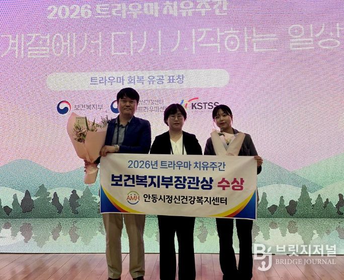 브릿지저널 정보영 기자 | 안동시정신건강복지센터는 20일 국립정신건강센터에서 열린 보건복지부 주최 ‘2026년 트라우마 치유주간’ 시상식에서, 산불 재난 경험자의 심리 회복을 위해 헌신한 공로를 인정받아 보건복지부 장관 표창을 수상했다고 밝혔다.