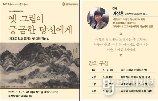울산박물관은 오는 5월 7일부터 28일까지 매주 목요일 오후 2시부터 4시까지 2026년 상반기 주제(테마)강좌 ‘옛 그림이 궁금한 당신에게’를 운영한다고 밝혔다.