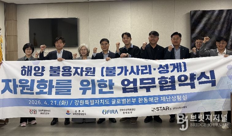 브릿지저널 윤나영 기자 | 강릉시는 21일 강원특별자치도청 글로벌본부 환동해관에서 강원특별자치도, 한국수산자원공단 동해본부, ㈜스타스테크와 함께 ‘해양 불용자원 자원화를 위한 업무협약’을 체결했다고 밝혔다.