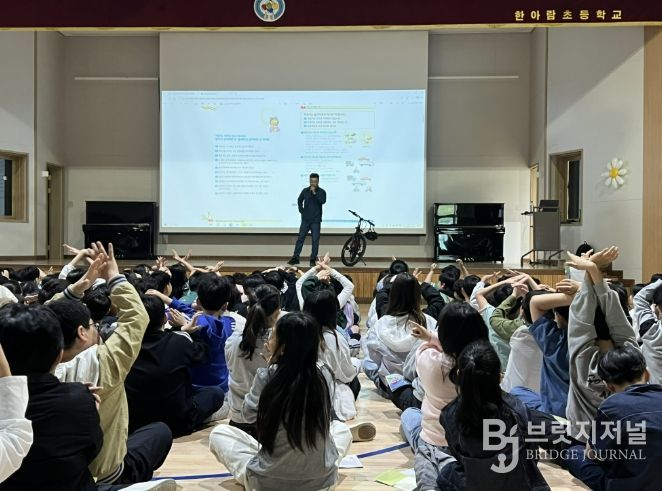 브릿지저널 김경미 기자 | 광주 한아람초등학교는 4월 20일부터 21일까지 이틀간 광주시 자전거연맹과 협력해 4학년 학생 223명을 대상으로 ‘찾아가는 자전거 안전교육’을 실시했다.