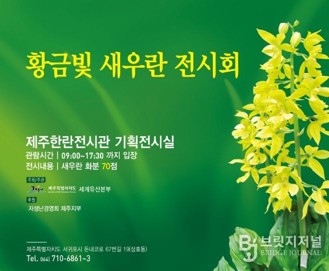브릿지저널 정보영 기자 | 제주특별자치도 세계유산본부가 24일부터 26일까지 3일간 제주한란전시관에서 ‘2026년 황금빛 새우란 전시회’를 연다.