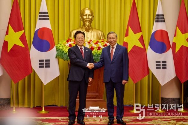 브릿지저널 김경미 기자 | 베트남을 국빈 방문한 이재명 대통령은 22일(현지시간) "양국은 2030년까지 교역 규모 1500억 불 목표 달성을 위해 교역·투자 협력을 더욱 호혜적으로 발전시켜 나가기로 했다"고 밝혔다.