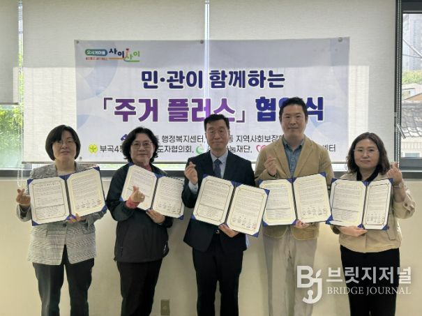 브릿지저널 윤나영 기자 | 부산 금정구 부곡4동은 지난 4월 21일 세정나눔재단, 금정구 자원봉사센터, 부곡4동 지역사회보장협의체, 부곡4동 새마을지도자협의회와 함께 『민관협력 주거 플러스』 사업 추진을 위한 업무협약을 체결했다.