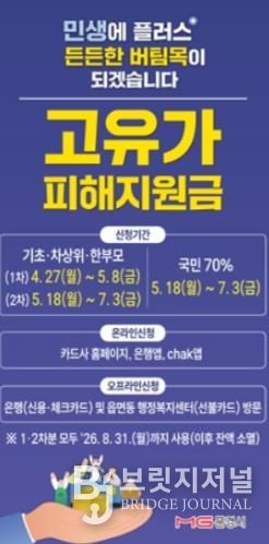 브릿지저널 정보영 기자 | 문경시가 최근 중동발 위기로 촉발된 고유가·고환율·고물가의 ‘3고 현상’에 대응해 시민 생활 안정을 위한 ‘고유가 피해지원금’을 오는 27일부터 신청·지급한다.