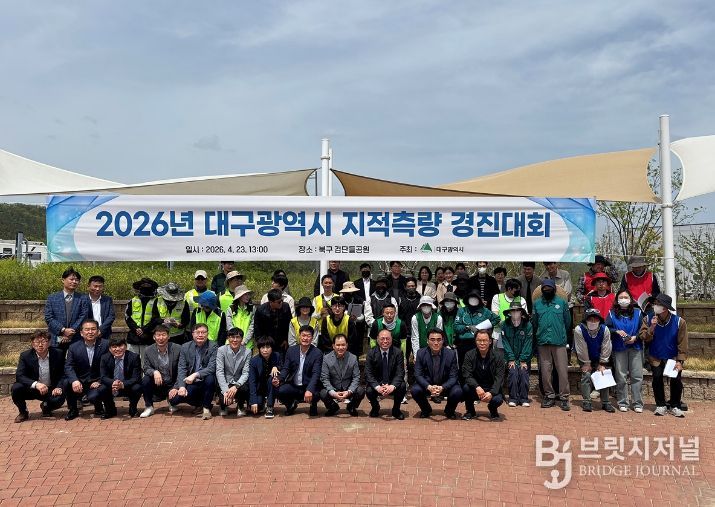 브릿지저널 김진석 기자 | 대구광역시는 4월 23일 북구 검단들공원에서 9개 구·군 지적공무원들이 참여하는 ‘2026년 지적측량 경진대회’를 개최했다. 이번 대회 결과, 중구가 최우수상의 영예를 안았으며, 북구와 동구가 각각 우수상과 장려상을 받았다.