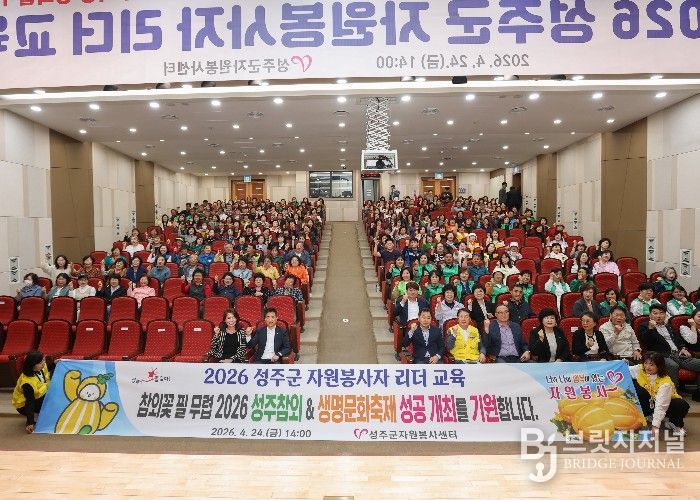 브릿지저널 정보영 기자 | 경북 성주군자원봉사센터는 지역 공동체의 따뜻한 변화를 이끄는 자원봉사 리더들을 한자리에 모아 의미 있는 교육의 장을 마련했다. 4월 24일 성주군청 대강당에서 열린 '2026 성주군 자원봉사자 리더 교육'은 단순한 역량 강화 교육을 넘어 나눔과 연대의 가치를 되새기고, 다가오는 지역 대표 축제를 함께 준비하는 결속의 자리로 깊은 울림을 전했다.