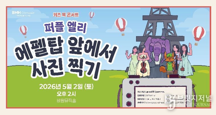 브릿지저널 김진석 기자 | 비원뮤직홀에서는 어린이날을 기념하기 위해 아이와 가족이 함께 감상할 수 있는 키즈 북 콘서트 ‘퍼플 엘리 – 에펠탑 앞에서 사진 찍기’를 오는 5월 2일 개최한다.