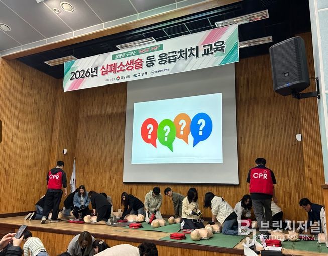 브릿지저널 김경미 기자 | 고성군은 4월 23일부터 24일까지 이틀간 고성군농업기술센터 2층 친환경농업연구소 강당에서 법정의무교육대상자 등 100여 명을 대상으로 ‘2026년 심폐소생술 등 응급처치 교육’을 실시했다.