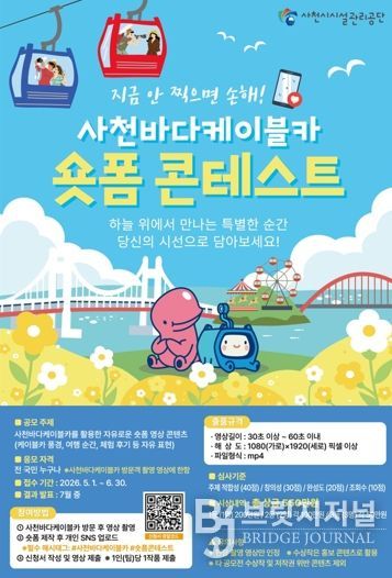 브릿지저널 김경미 기자 | 사천시시설관리공단은 사천바다케이블카의 매력을 널리 알리고 방문객 참여형 콘텐츠를 발굴하기 위해 ‘사천바다케이블카 숏폼 콘테스트’를 개최한다고 26일 밝혔다.