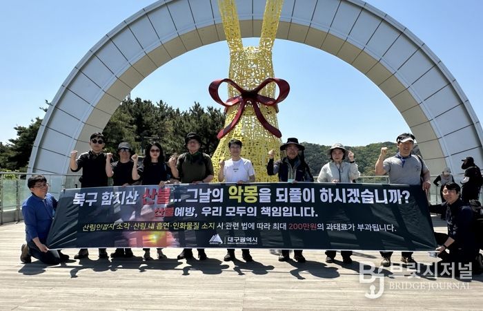 브릿지저널 김진석 기자 | 대구광역시는 지난해 4월 28일 발생한 ‘함지산 산불 1년’을 맞아 산불의 위험성과 예방의 중요성을 널리 알리기 위해 4월 25일 오전 10시 앞산공원 큰골에서 산불예방 캠페인을 실시했다.