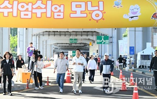 브릿지저널 김경미 기자 | 오세훈 서울시장은 26일 아침 ‘2026 차 없는 잠수교 뚜벅뚜벅 축제’ 부대 행사로 열린 ‘쉬엄쉬엄 모닝’에 참여했다.