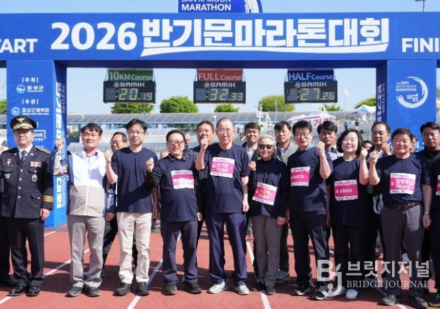 브릿지저널 김경미 기자 | 1만1500여 명의 힘찬 발걸음이 충북 음성을 가득 메웠다. ‘제20회 반기문마라톤대회’가 26일 음성종합운동장 일원에서 안전과 열정, 감동을 한데 녹여내며 성황리에 마무리됐다.