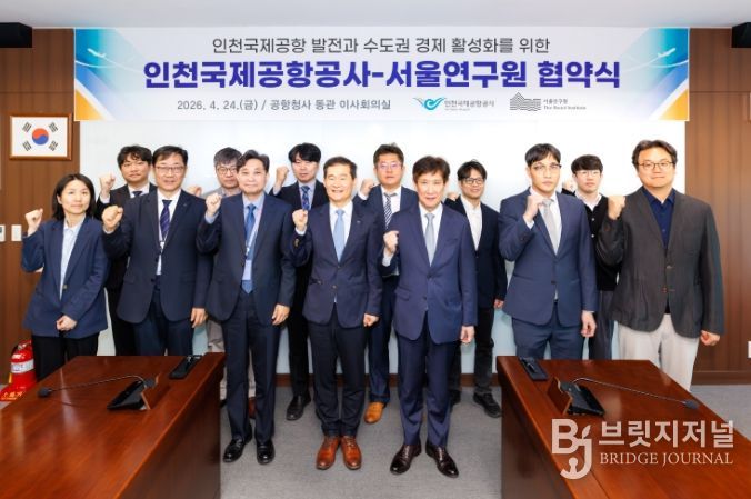 브릿지저널 김경미 기자 | 인천국제공항공사는 지난 24일 청사 회의실에서 서울연구원과 ‘상호협력 및 연구 네트워크 강화를 위한 업무협약’을 체결했다고 26일 밝혔다.