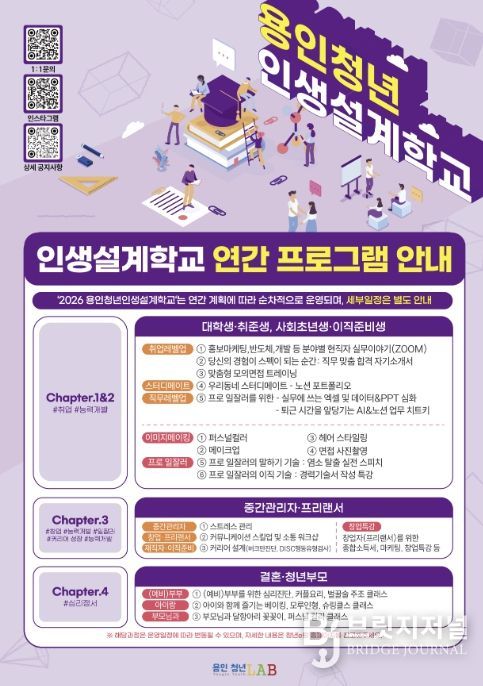 브릿지저널 김경미 기자 | 용인특례시는 오는 5월 4일까지 ‘용인청년 인생설계학교’ 중간관리자 교육 수강생을 모집한다고 27일 밝혔다.