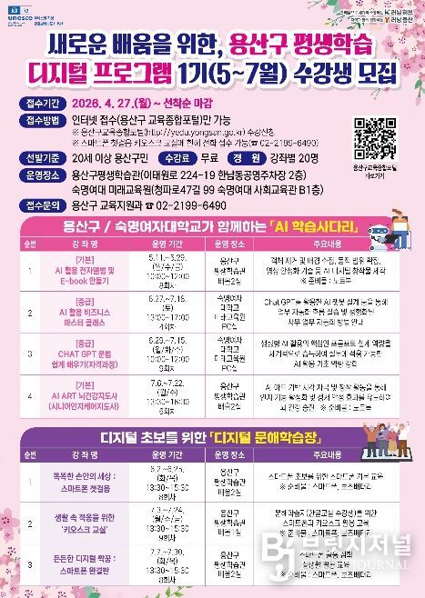 브릿지저널 김경미 기자 | 서울 용산구가 ‘2026년 평생교육 분야 공모사업’에서 서울시 자치구 중 유일하게 교육부 2개, 서울시 2개 등 총 4개 분야에 동시 선정됐다.