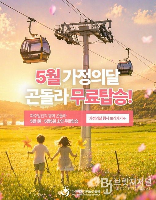브릿지저널 김경미 기자 | 파주시는 대표 관광 콘텐츠로 자리 잡은 ‘파주임진각평화곤돌라’에서 5월 가정의 달을 맞아 가족 단위 방문객을 위한 다양한 프로그램을 운영한다고 전했다.