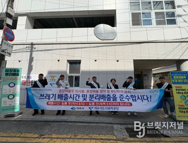 브릿지저널 김경미 기자 | 여수시도시관리공단은 2026년 4월 24일 학동 선소상가 일원에서 생활폐기물 배출질서 확립을 위한 현장 집중 홍보 활동을 실시했다.