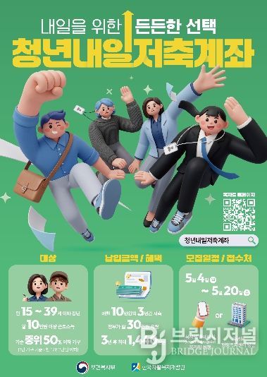 브릿지저널 김경미 기자 | 부평구는 오는 5월 4일부터 20일까지 근로 활동을 하는 저소득층 청년을 대상으로 자산형성지원 사업인 ‘청년내일저축계좌’ 신규 가입자를 모집한다.